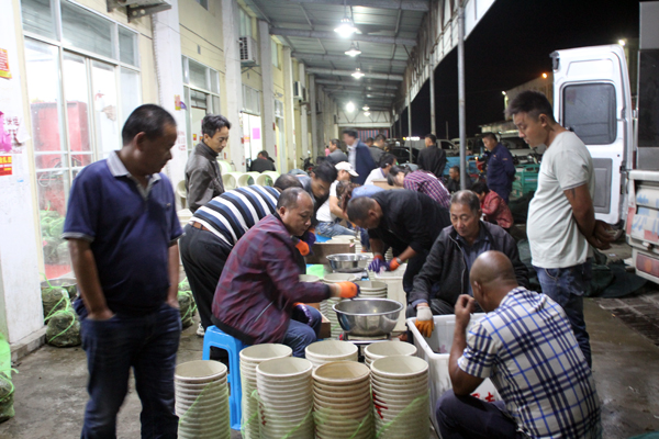 虽然已是9月17日凌晨四点,但车水马龙人声鼎沸,有送卖蟹的,有发运蟹的,有询价的商谈,有交货的吆喝,有经纪人的镇定,有蟹农的匆忙……,兴化河蟹市场特有的繁华交易场景,吸引了摄制组一行顾不上夜里的疲倦,连轴转赶到安丰国蟹市场。摄制组忙完了市场夜景的航拍,接二连三采访了市场经纪人、发运点和航运点,聆听着他们今年经营兴化大闸蟹的感受和直觉,感受着他们今年对兴化大闸蟹的信心和激情,一袋袋分拣好的各种规格雌雄兴化大闸蟹预示着他们收获今年更好的秋天。
